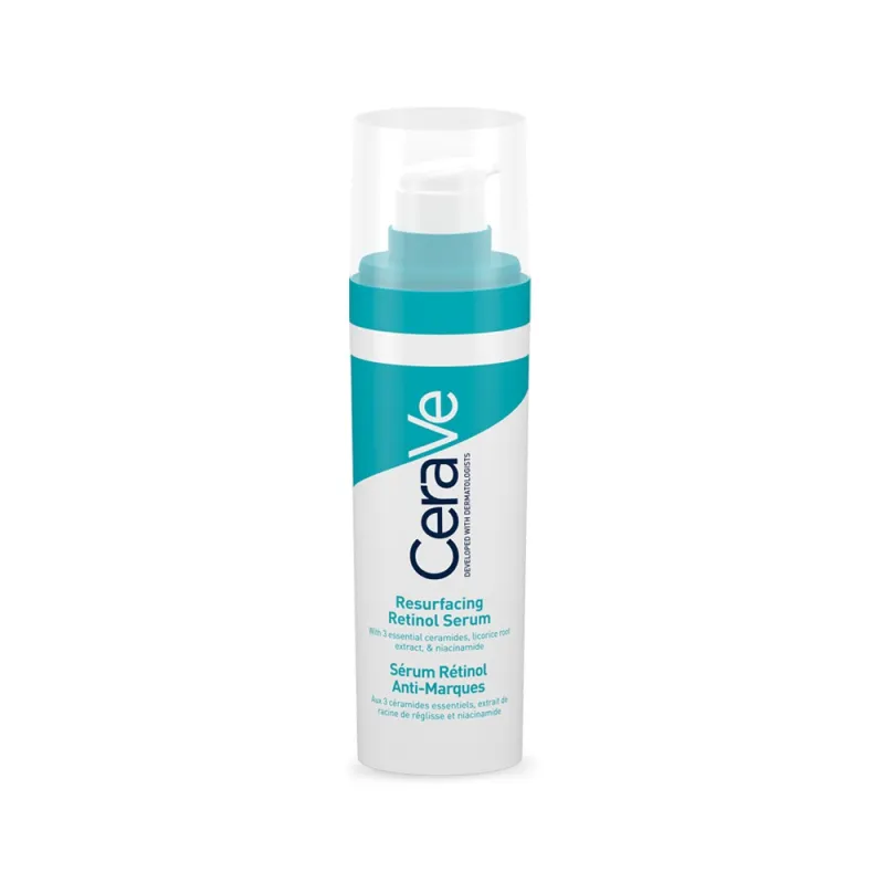 CeraVe sérum retinol antimarcas acnE© contribuye a suavizar la textura de las marcas en la piel del rostro.
