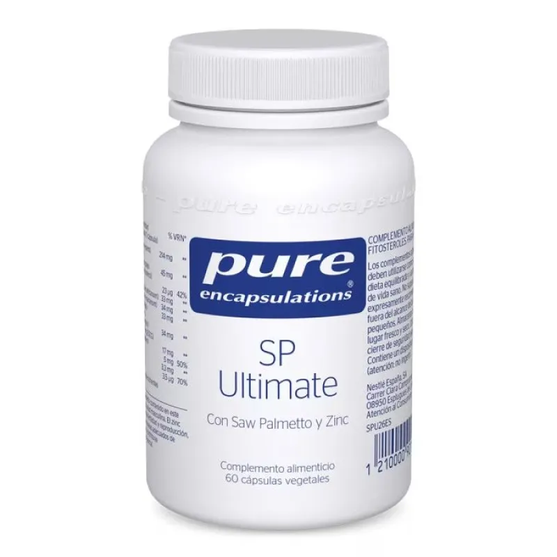 Pure SP Ultimate es un complemento alimenticio formulado en base a cápsulas vegetales que integran una selección de extractos y micronutrientes. Su fórmula combina extracto de saw palmetto, licopeno, selenio, vitamina E, zinc y vitamina D en una dosis diaria recomendada que facilita su incorporación a la rutina alimentaria. Está especialmente diseñado para hombres que deseen complementar su dieta con componentes que contribuyan al funcionamiento normal de la próstata, así como al bienestar del tracto urinario. La fórmula aprovecha la sinergia de los ingredientes para ofrecer un aporte nutricional que favorece el equilibrio hormonal masculino y la protección celular frente al estrés oxidativo.