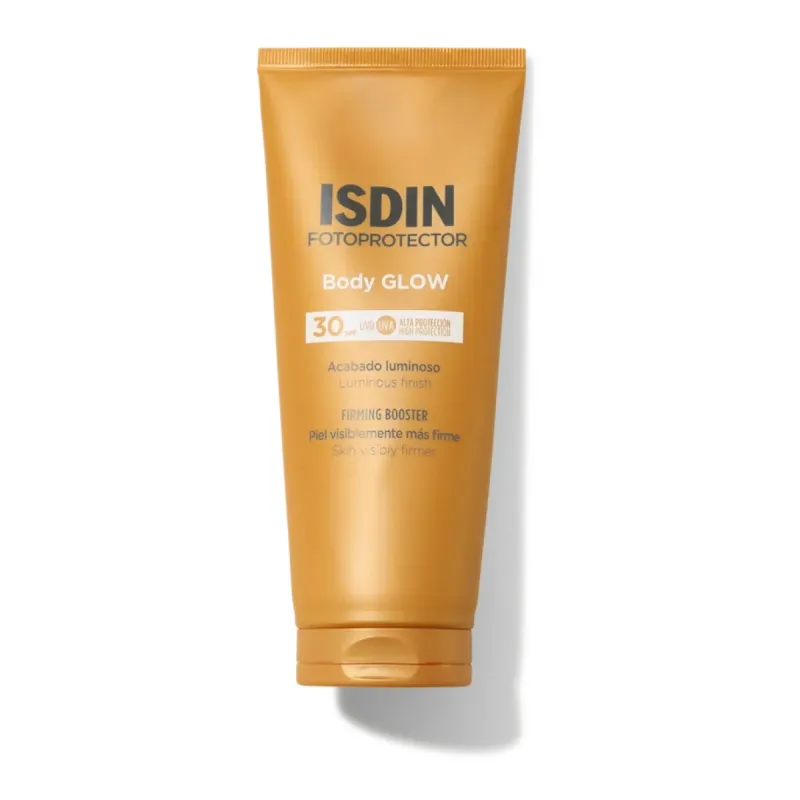 Isdin Fotoprotector Body Glow SPF30 es un protector solar corporal que ofrece una alta protección frente a los rayos UV, al tiempo que aporta un efecto luminoso natural a la piel. Su textura ligera y de rápida absorción lo convierte en una opción ideal para quienes buscan una piel protegida y con aspecto saludable durante la exposición solar.