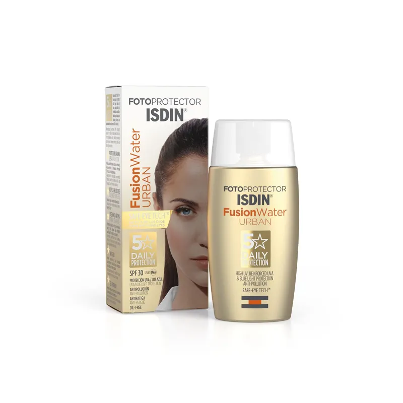 Isdin Spf-30 Fusion Water Urban es un protector para la piel que contiene factor SPF30 y filtros contra los rayos UVA y UVB. Ideal para utilizarlo en las zonas urbanas gracias a su textura acuosa y ultraligera.