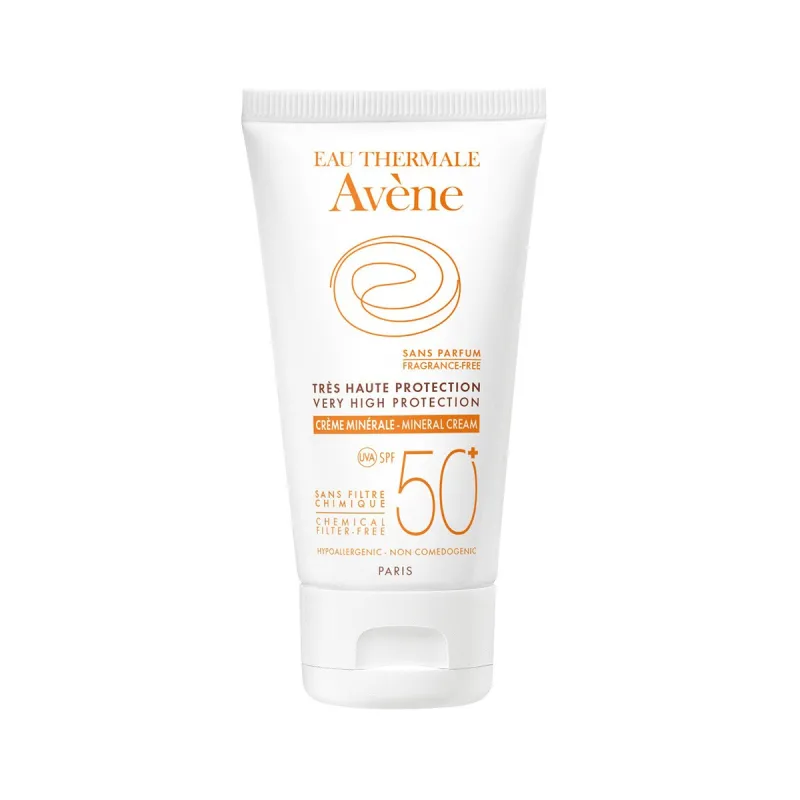 Avene Crema Mineral Pantallas físicas SPF50+, protege eficazmente todo tipo de piel de las radiaciones solares, incluso las pieles más sensibles e intolerantes, sin causar irritaciones.