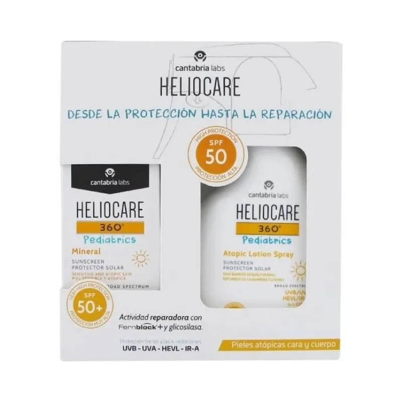 Pack Heliocare Pediatrics 360º: Protección Mineral SPF50+ y Loción Atópica para piel sensible de niños. Cuidado integral, seguro y suave.