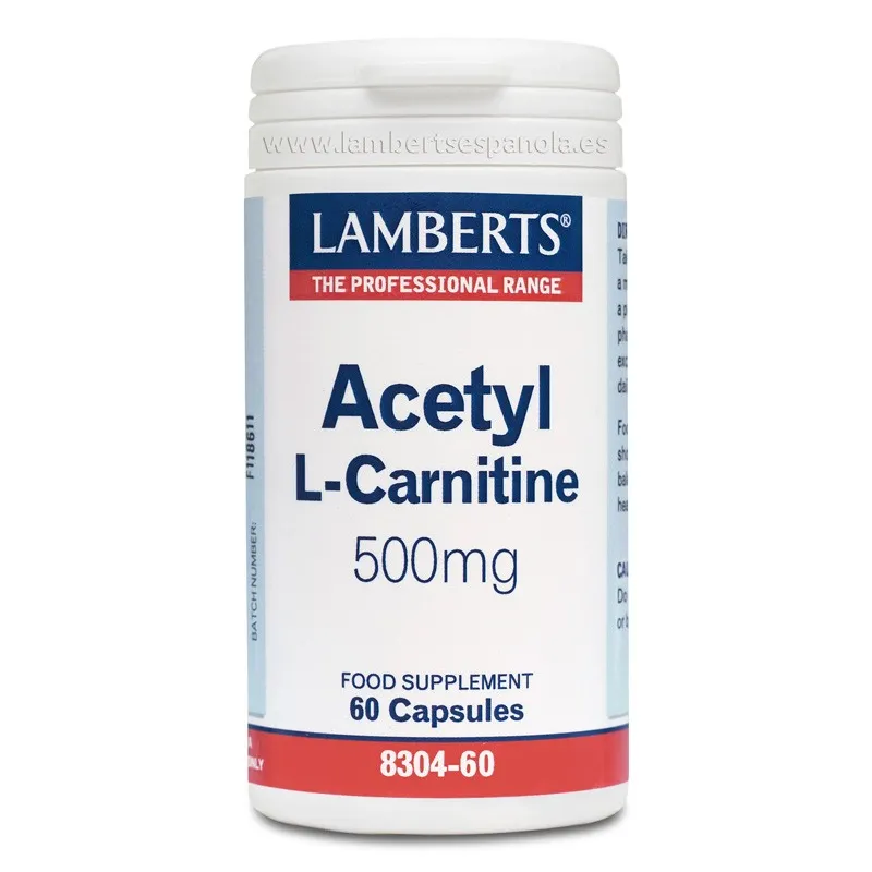Suplemento alimenticio que aporta 500 mg de L-Acetil Carnitina por cápsula, un aminoácido que contribuye al transporte normal de ácidos grasos y al metabolismo energético.