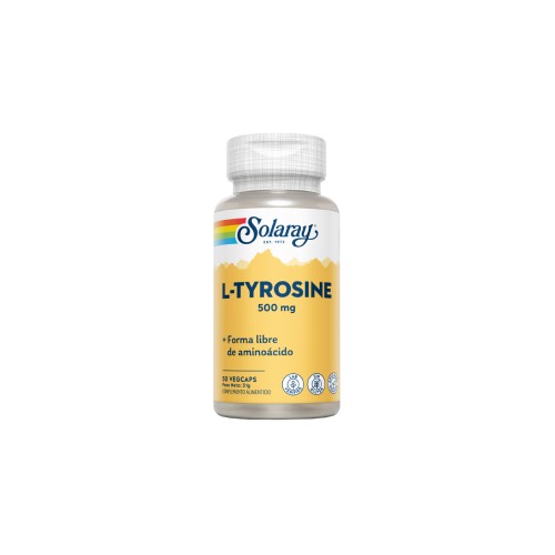 Solaray L-Tyrosina es un complemento alimenticio que aporta L-tirosina en su forma libre, un aminoácido semiesencial que desempeña un papel clave en la síntesis de neurotransmisores como dopamina, noradrenalina y adrenalina. La L-tirosina contribuye al funcionamiento normal del sistema nervioso, colaborando en la respuesta al estrés y en el mantenimiento de la concentración y el rendimiento mental.