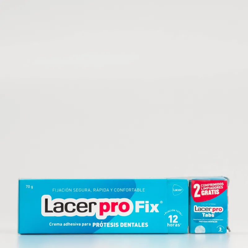 La crema adhesiva Lacer Profix fija las dentaduras postizas de forma segura y duradera sin provocar molestias , irritaciones ni mal aliento.