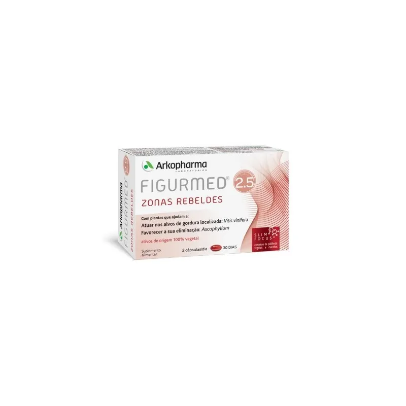 Arkopharma Figurmed Zonas Rebeldes es un complemento alimenticio desarrollado con ingredientes 100% de origen vegetal, cuya composición está dirigida a zonas de acumulación de grasa de difícil reducción. Incluye extracto de Vitis vinifera y Ascophyllum nodosum, combinado con otros compuestos que participan en los procesos metabólicos del tejido adiposo.