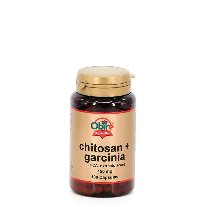 Obire Chitosán + HCA–Garcinia es un complemento alimenticio diseñado para aportar chitosán de alta pureza y extracto seco de Garcinia cambogia con un 60 % de HCA. Cada cápsula contiene 450 mg de mezcla, adecuada para su uso en dietas equilibradas.