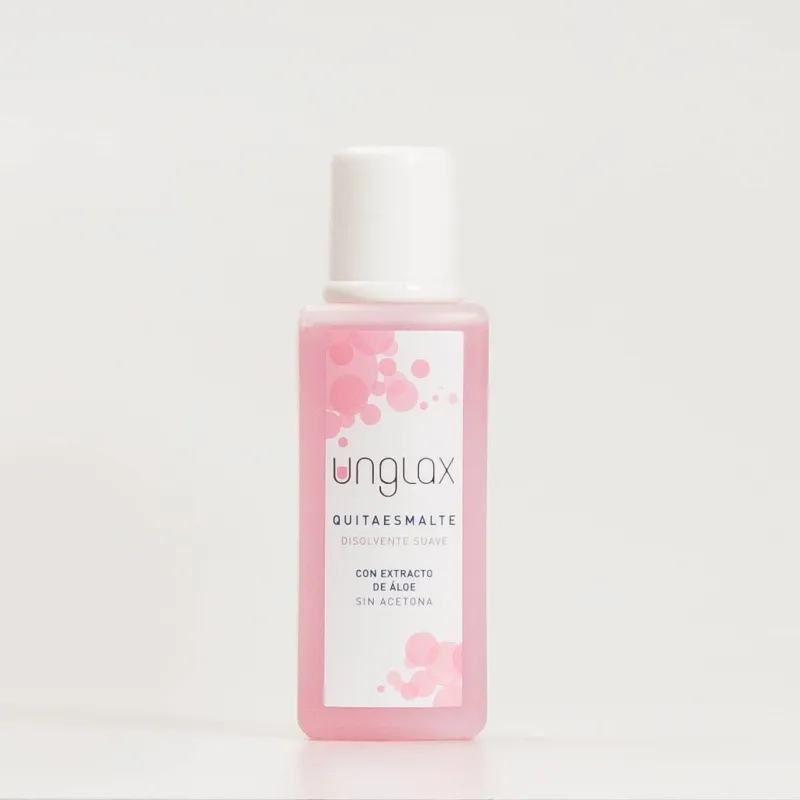 Unglax quitaesmalte suavizante limpia de manera eficaz las uñas sin dañarlas ni resecarlas. No contiene Acetona.