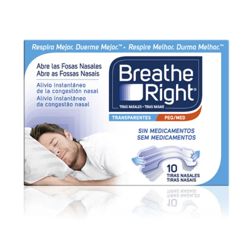 Se recomienda utilizar las tiras nasales Breathe Right Transparentes Talla Pequeña antes de acostarse para obtener un mejor descanso nocturno y una respiración más eficiente. Consulta con tu médico si experimentas algún tipo de reacción alérgica o irritación en la piel al utilizar este producto.