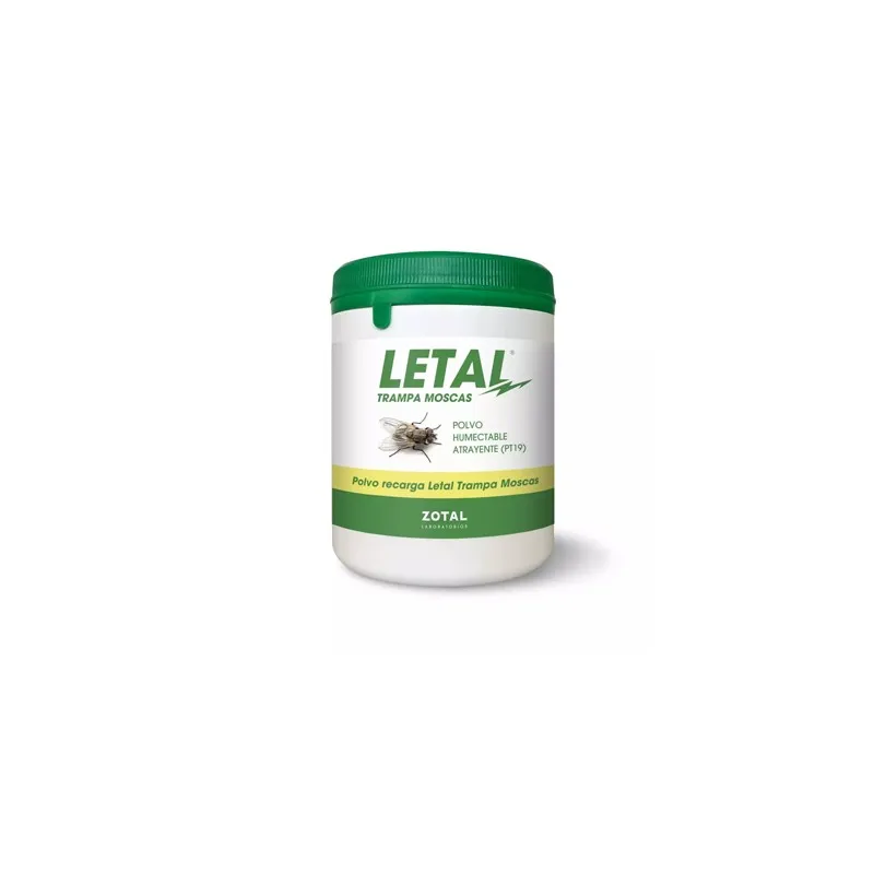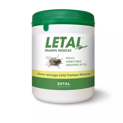 Letal Atrayente Trampa Moscas es un producto perfecto para combatir las moscas en espacios exteriores. Se trata de un polvo soluble presentado en sobres que, mezclado con agua, ejerce un poder atrayente hacia las moscas.
