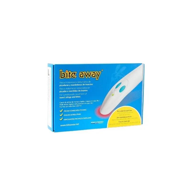 Bite away es un equipo que mejora los síntomas producidos por picaduras de insectos. Disminuye el picor y la inflamación.