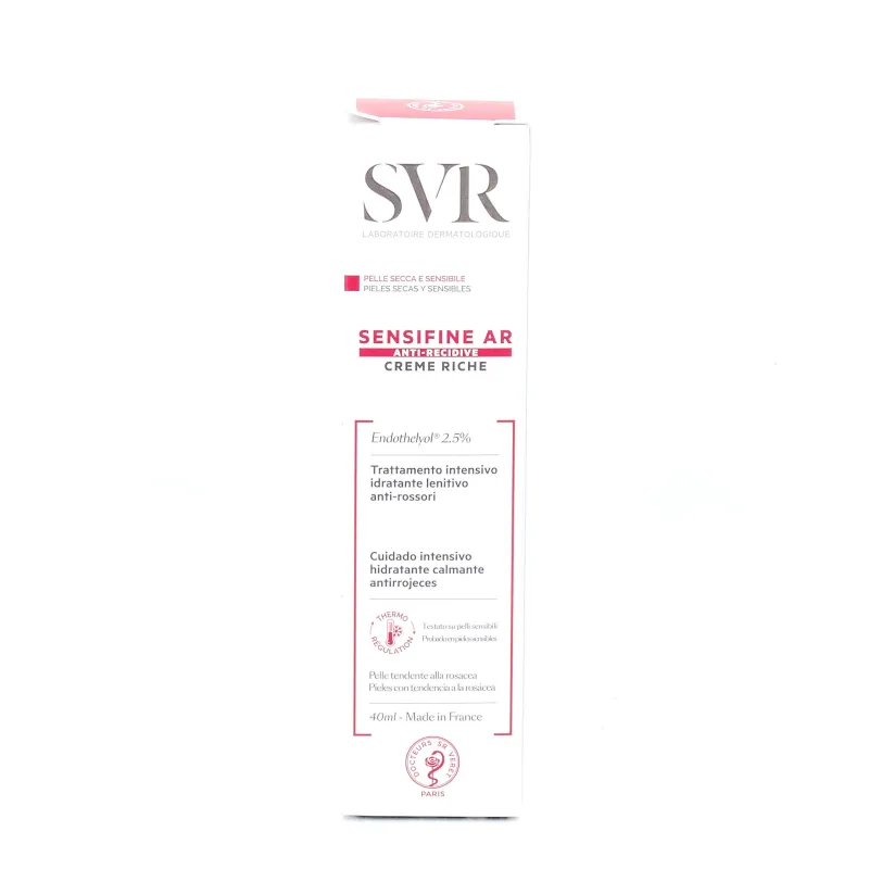 SVR Sensifine AR Creme Richees una crema hidratante indicada para apoyar el cuidado y la protección de la piel sensible con tendencia al enrojecimiento. Su fórmula, con efecto termorregulador, contribuye a calmar la sensación de calor y ayuda a prevenir la aparición de rojeces en la piel.