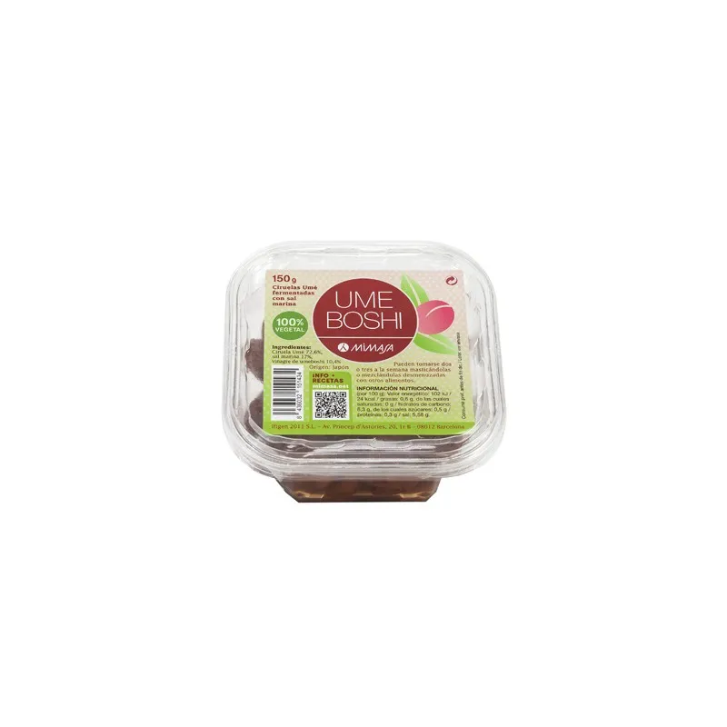 El Mimasa Umeboshi Natural 150 gr es un condimento de origen japonés obtenido mediante la fermentación de ciruelas llamadas ume. Su uso principal es culinario, aportando un sabor ácido y salado característico en ensaladas, arroces, salsas y aliños.