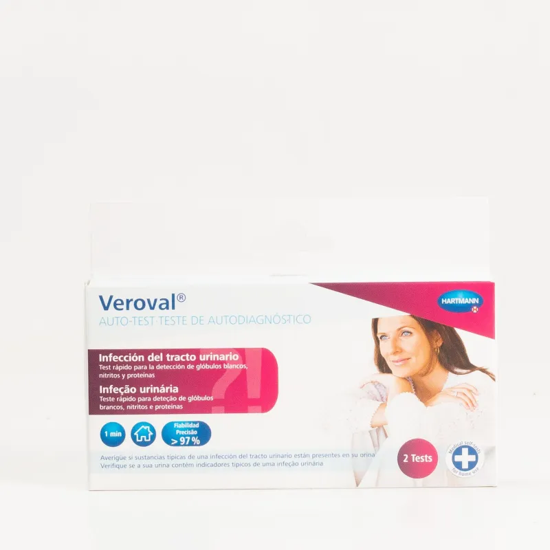 Veroval Auto-test Infección del tracto urinario detecta en solo 1 minuto la presencia de leucocitos, nitritos y proteínas en orina para determinar si las molestias que siente se deben a una infección.