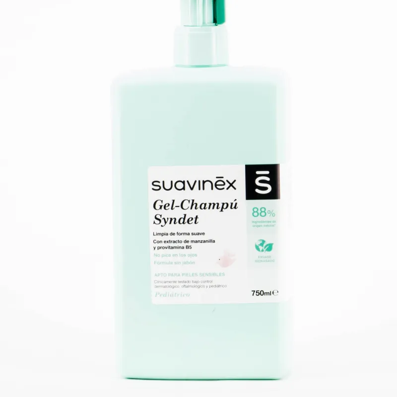 Champú indicado para el lavado del cabello del bebé, elimina impurezas y limpia el cabello a porfundidad. Suavinex Gel-Champú Syndet no provoca irritación en caso de contacto con los ojos.