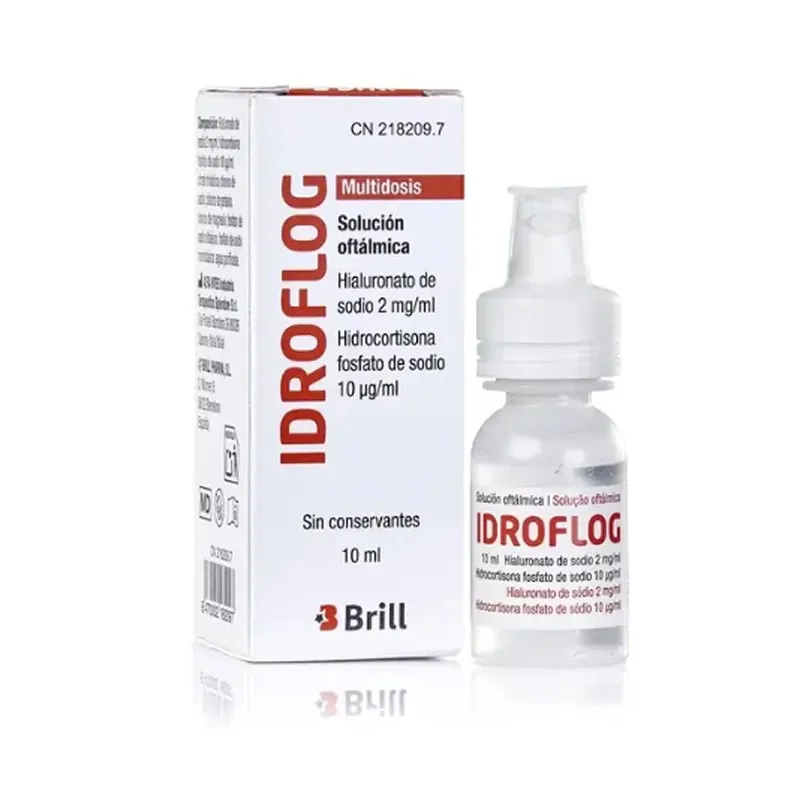 Idroflog Solución Oftálmica se presenta en un envase multidosis de 10 ml que garantiza la conservación y la esterilidad del producto. Su formato práctico y fácil de usar lo hace ideal para llevarlo consigo y utilizarlo en cualquier momento del día.