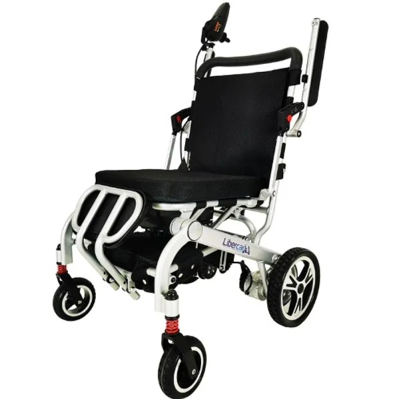 La silla de ruedas eléctrica plegable combina la comodidad y conveniencia con una alta funcionalidad. Equipada con motores 2x150W brushless y una batería de litio con diversas autonomías según el modelo, proporciona una velocidad máxima de 6 km/h. Con su chasis de aluminio y un peso total de 18,9 kg (sin batería), esta silla es ligera pero fuerte y capaz de soportar un peso máximo de 100 kg.