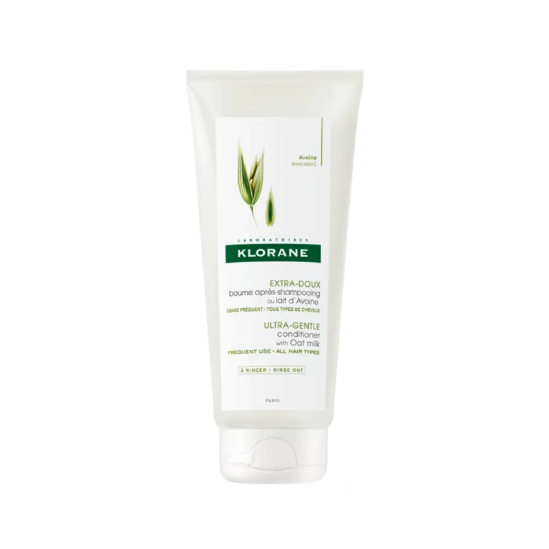 Klorane Bálsamo para después del champú extra suave a la leche de avena acondiciona el cabello y lo deja suave y fácil de desenredar. Para toda la familia, apto a partir de los 3 años.