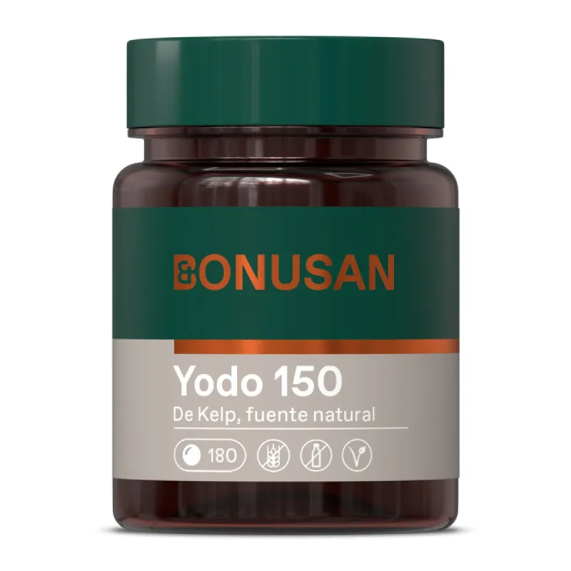 Bonusan Yodo (de Kelp) es un complemento alimenticio que aporta yodo procedente del alga kelp (Ascophyllum nodosum), reconocido por su origen natural. Está formulado para complementar la ingesta diaria de este oligoelemento esencial, necesario para el funcionamiento normal de la glándula tiroides y la síntesis de hormonas tiroideas.