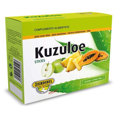 Kuzuloe 30 Sticks Herdibel es un complemento alimenticio en formato stick diseñado para contribuir al bienestar digestivo, integrando ingredientes de origen natural en cada dosis.