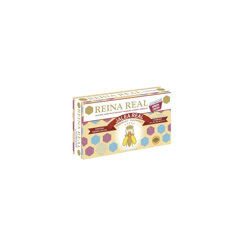 Reina Real Infantil 20amp Robis es un complemento alimenticio en formato ampolla, concebido para aportar nutrientes que contribuyen al normal funcionamiento del sistema inmunitario y al metabolismo energético en niños. Su fórmula integra jalea real, propóleo, polen y vitamina C, seleccionados para facilitar la incorporación de compuestos naturales relacionados con el crecimiento y el bienestar infantil.