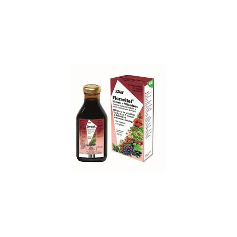 Salus Floravital, 250 ml, es un complemento alimenticio en formato jarabe que combina gluconato de hierro con vitaminas del grupo B (riboflavina, piridoxina, cobalamina) y vitamina C, obtenidas de extractos frutales. Su presentación líquida favorece la dosificación y la absorción de los nutrientes, adaptándose a diversas necesidades según edad y condiciones específicas.
