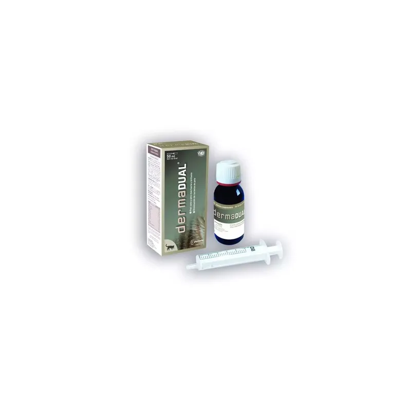 Dermadual Gato Gel 50 ml viene en un práctico estuche con envase de 50 ml e incluye una jeringa dosificadora para una fácil administración. Este producto se administra por vía oral.