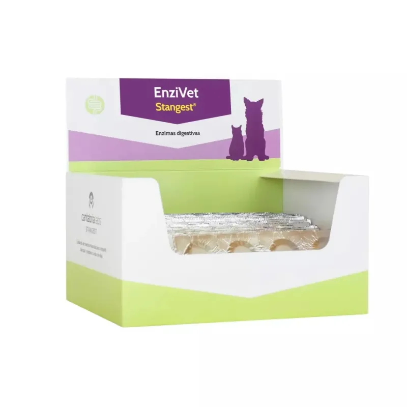 Enzivet es un suplemento enzimático diseñado para apoyar la digestión en perros y gatos. Contiene una combinación de enzimas digestivas que ayudan a descomponer los alimentos, mejorando la absorción de nutrientes y aliviando los problemas digestivos. Este producto es especialmente útil para mascotas que tienen dificultades digestivas, como insuficiencia pancreática exocrina, o que requieren un soporte adicional para una digestión óptima.