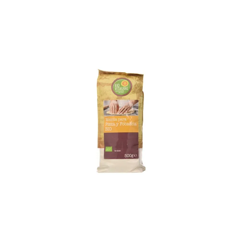 Biovitagral Mezcla Pizza-Focaccia 500g es una mezcla orgánica y sin gluten para preparar pizzas y focaccias caseras con sabor auténtico y textura esponjosa.