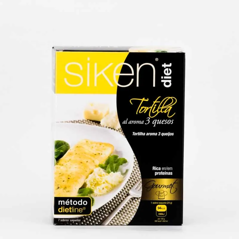 Siken Diet Tortilla al Aroma de 3 Quesos es una fórmula en polvo diseñada para preparar una tortilla con sabor a tres quesos de manera rápida y sencilla. Cada sobre contiene ingredientes seleccionados para obtener un aporte proteico elevado y un bajo valor energético, lo que la convierte en una opción práctica dentro de un estilo de vida equilibrado.