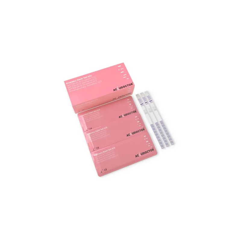 Accudoctor Test de embarazo (HCG) a tiras 10mIU/mL es un producto diseñado para detectar la presencia de la hormona gonadotropina coriónica humana (HCG) en la orina. Esta hormona es producida durante el embarazo y su detección es clave para confirmar la gestación.