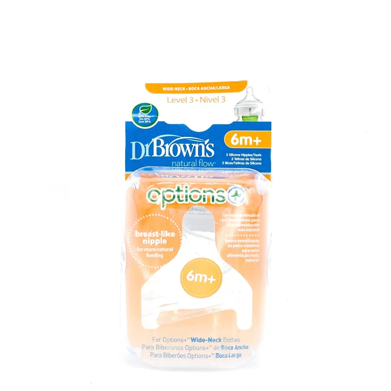 Las tetinas Dr Brown de Silicona boca ancha nivel 3 están diseñadas para la alimentación infantil de bebés a partir de los 6 meses.
