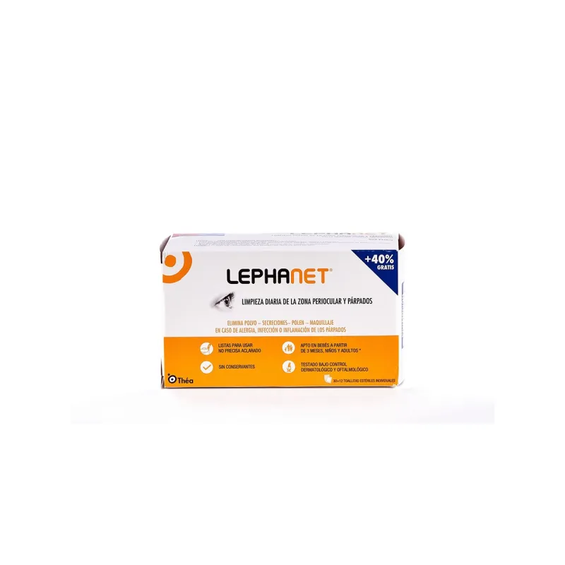 Lephanet Toallitas son toallitas diseñadas específicamente para la higiene de los párpados. Este producto viene en un paquete que incluye 30+12 toallitas y está formulado para proporcionar una limpieza suave y efectiva de los párpados, siendo adecuado para usuarios con sensibilidad en la zona ocular o que requieren una higiene ocular especial.