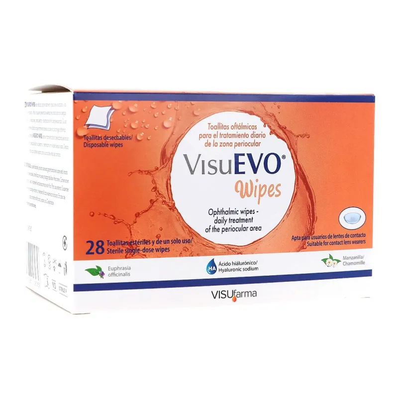 Visuevo Wipes son toallitas estériles de un solo uso, formuladas para la higiene diaria de los párpados, pestañas y borde palpebral. Están indicadas para personas con ojos sensibles o propensas a irritaciones oculares.
