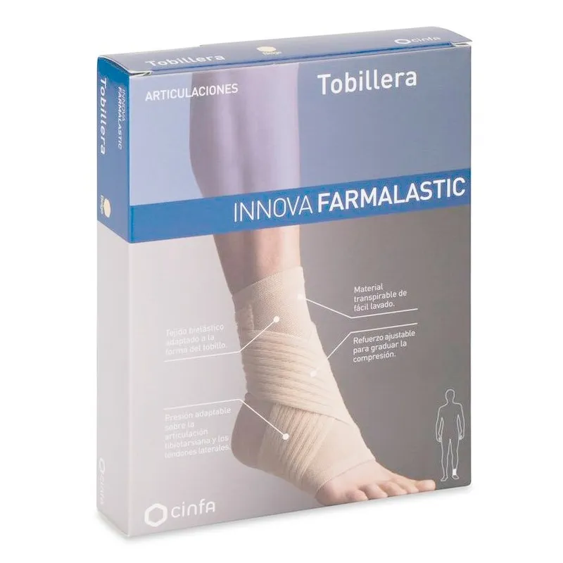 Innova Farmalastic Tobillera se presenta en un envase que contiene una unidad en color beige y en talla pequeña. El diseño ergonómico y la calidad de los materiales utilizados garantizan una excelente adaptabilidad y confort durante su uso.
