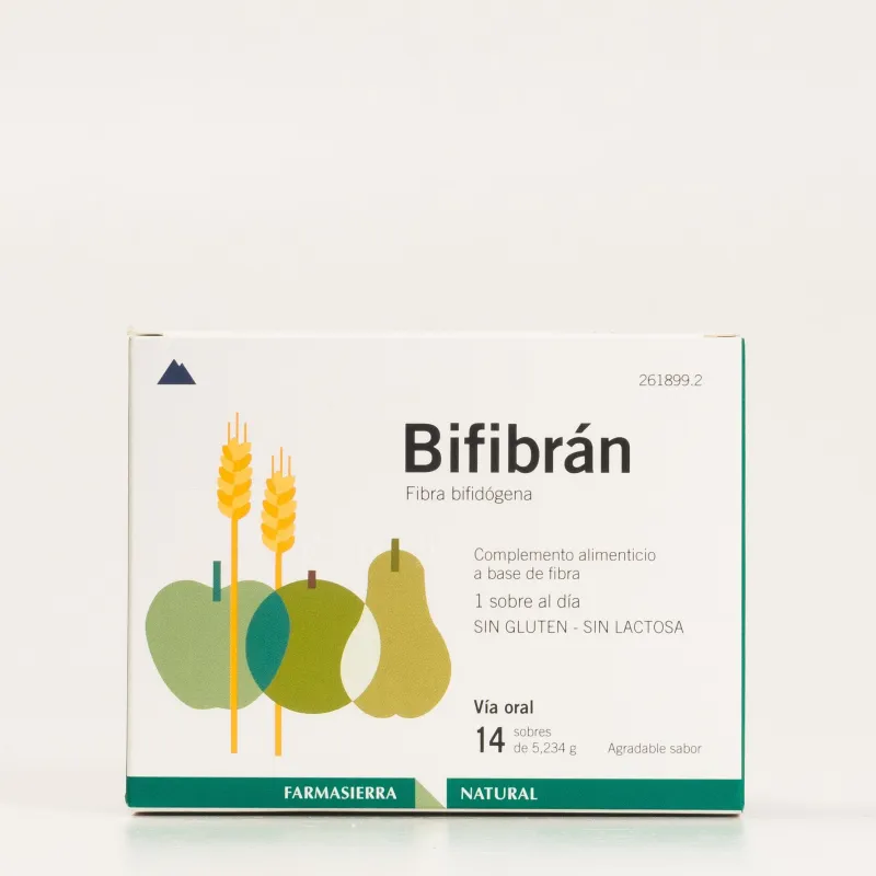 Bifibran es un complemento alimenticio basado en fibra bifidógena soluble (fructooligosacáridos) que, dentro de una dieta equilibrada, contribuye al mantenimiento de la flora intestinal. Se presenta en sobres fáciles de disolver, diseñados para favorecer la regularidad del tránsito intestinal sin provocar efectos secundarios ni rebote.