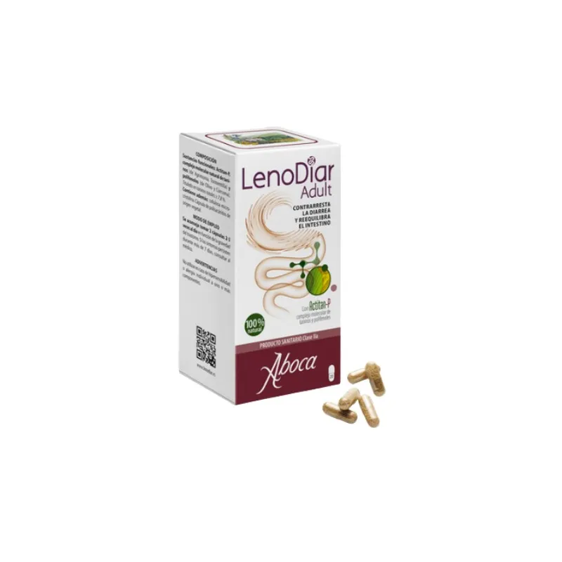 Aboca LenoDiar Adulto es un producto sanitario en cápsulas con Actitan-P, un complejo vegetal que combina taninos y polifenoles extraídos de plantas como Agrimonia, Tormentilla, Olivo y Cúrcuma. Está diseñado para contribuir al apoyo de la función intestinal y a restablecer el equilibrio de la mucosa.
