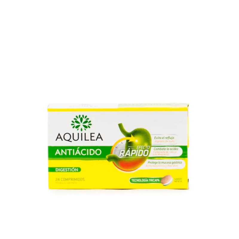 Aquilea Antiácido es un complemento alimenticio formulado con una combinación sinérgica de ingredientes seleccionados para contribuir al bienestar digestivo. Contiene alginato de sodio, que forma una barrera protectora sobre las mucosas, sales de carbonato de calcio y carbonato de magnesio para favorecer el equilibrio del pH estomacal, ácido hialurónico de alto peso molecular para apoyar la regeneración y la hidratación de los tejidos de la mucosa, y gel de aloe vera procedente de cultivos controlados que puede aportar un efecto suavizante y tonificante. Esta composición permite intervenir en episodios ocasionales de acidez y reflujo, aportando confort tras las ingestas y en situaciones de estrés digestivo pasajero.