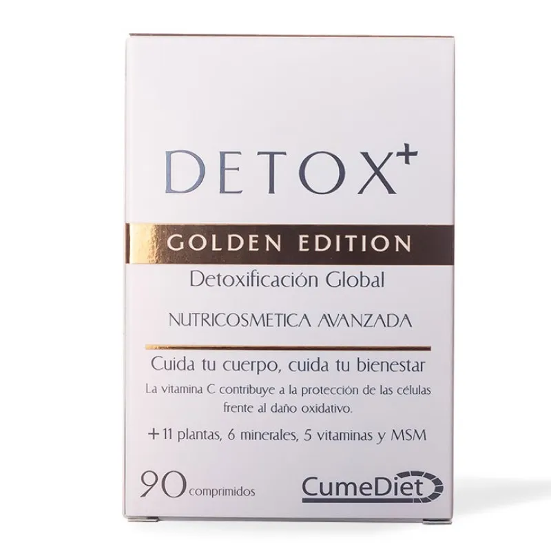 Cumediet Detox Plus Golden es un complemento alimenticio diseñado con extractos de alcachofa, diente de león y cardo mariano. Sus componentes han sido seleccionados por sus funciones que favorecen la depuración natural del organismo, apoyando la función normal del hígado y de la eliminación de líquidos.