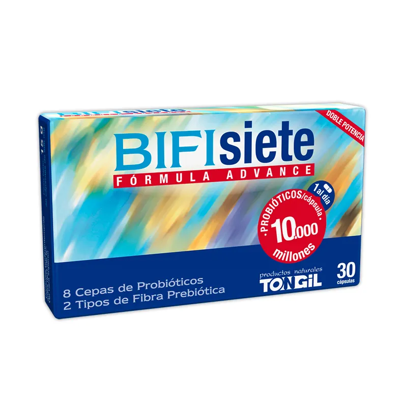 Tongil Bifisiete es un complemento alimenticio diseñado para aportar siete cepas de probióticos y fibra prebiótica de inulina en cada cápsula. Está formulado para apoyar el bienestar del sistema gastrointestinal, favoreciendo el equilibrio de la microbiota y contribuyendo a un tránsito intestinal regular.