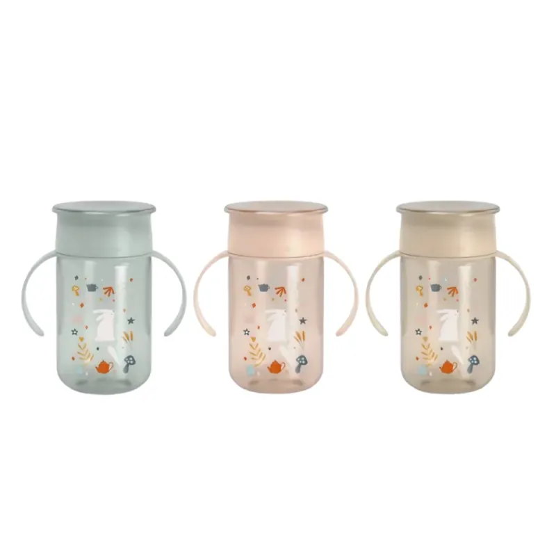 Se presenta con una capacidad de 340 ml y asas ergonómicas extraíbles para adaptar la taza al nivel de autonomía del bebé. Su diseño ligero y funcional está pensado para su uso diario, tanto en casa como fuera de ella. El material es seguro y libre de Bisfenol A (0% BPA), lo que garantiza un contacto seguro con los líquidos.