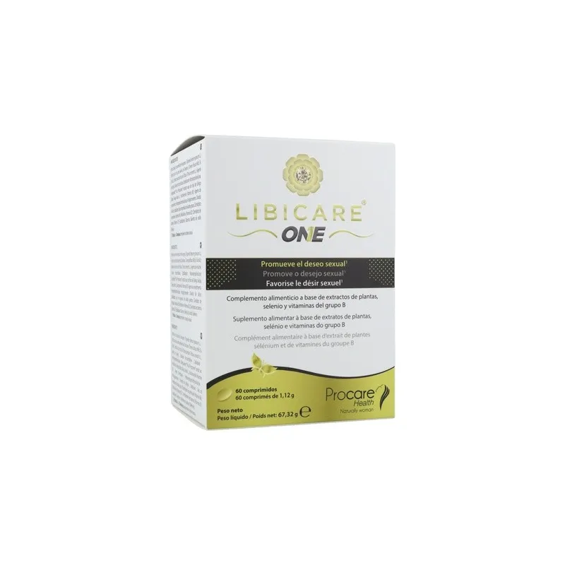 Libicare One es un complemento alimenticio en comprimidos, formulado con extractos de fenogreco (Trigonella foenum-graecum), tribulus terrestris, fitosomas de Ginkgo biloba y un complejo de vitaminas B (B1, B2, B3 y B6). Cada comprimido aporta fitocomponentes y micronutrientes destinados a contribuir al metabolismo hormonal femenino y al bienestar diario. El formato de 60 comprimidos proporciona un suministro para dos meses, facilitando su incorporación en la rutina habitual.