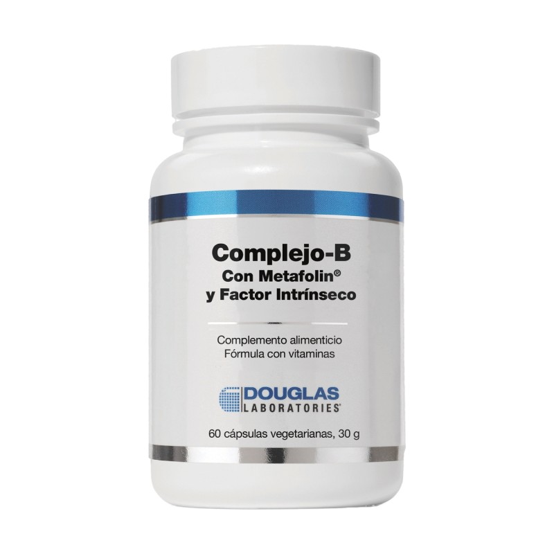Douglas Labs Complejo-B, Metafolin + Factor intrínseco es un complemento alimenticio en cápsulas vegetales, libre de gluten y sin colorantes artificiales, que aporta un complejo completo de vitaminas del grupo B junto a folato en forma de Metafolin y factor intrínseco. Este producto ha sido formulado para contribuir al aporte diario de micronutrientes implicados en el metabolismo energético y para apoyar el suministro de nutrientes esenciales relacionados con la producción de células sanguíneas, el mantenimiento de funciones neurológicas y la regulación del sistema inmunitario. Su formato en vegicaps facilita la administración y está orientado a personas con dietas particulares, como vegetarianos y veganos.