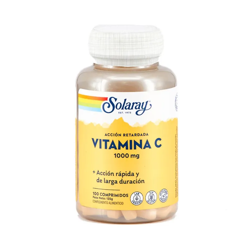 Solaray Vitamina C 1000 mg es un complemento alimenticio formulado con ácido ascórbico, extracto de escaramujo y concentrado de acerola. Cada comprimido aporta 1000 mg de vitamina C para contribuir al aporte diario recomendado dentro de una dieta variada. La vitamina C es un nutriente esencial reconocido por su capacidad de ayudar a proteger las células frente al daño oxidativo. Este formato de liberación mixta combina vitamina C de rápida liberación y de liberación prolongada para garantizar una disponibilidad gradual durante el día. No sustituye una alimentación equilibrada ni un estilo de vida saludable y se comercializa conforme al Reglamento (CE) 1924/2006 y a las recomendaciones de la AESAN.