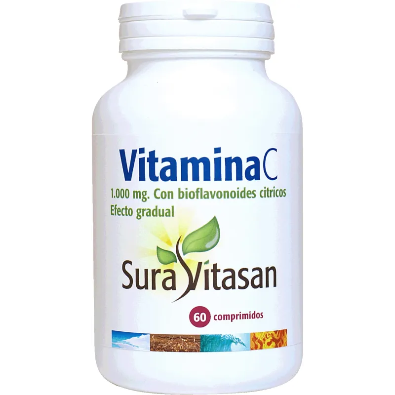 Sura Vitasan Vitamina C 1000mg es un complemento alimenticio que aporta 1.000 mg de ácido ascórbico por comprimido, junto con extracto de escaramujo y bioflavonoides cítricos. Estos compuestos pueden contribuir al metabolismo energético normal, a la cicatrización y a la función inmunitaria. Su formato en comprimidos facilita una administración precisa y un aporte diario continuado. Se ha desarrollado para personas que buscan un soporte antioxidante y mejorar la absorción de la vitamina C gracias a la asociación con bioflavonoides. Su vinculación con bioflavonoides permite un soporte adicional frente a situaciones de estrés oxidativo. Está indicada para personas con requerimientos incrementados de vitamina C, deportistas o colectivos expuestos a agresiones ambientales como contaminación o tabaquismo.