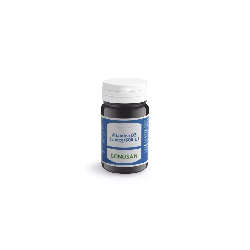 Bonusan Vitamina D3 15 mcg (600 UI) 90 perlas es un complemento alimenticio diseñado para aportar colecalciferol en un formato de fácil ingestión. La vitamina D3 contribuye al mantenimiento de niveles normales de calcio y fósforo en sangre, al funcionamiento normal de los músculos y al funcionamiento normal del sistema inmunitario. Este producto resulta adecuado para personas con exposición solar insuficiente o con dietas que no cubran las necesidades de vitamina D.