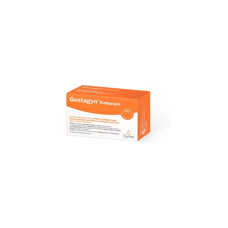 Gestagyn Embarazo, 30 cápsulas es un complemento alimenticio formulado para aportar nutrientes esenciales en el periodo de preconcepción y gestación. Cada cápsula combina DHA, ácido fólico, yodo, hierro y vitamina D, seleccionados por su presencia en procesos fisiológicos implicados en el desarrollo materno y fetal. El formato en cápsulas permite una dosificación precisa de los micronutrientes necesarios durante el embarazo.