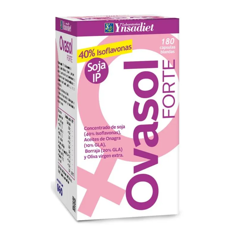 Ynsadiet Ovasol Forte es un complemento alimenticio en formato perlas que combina concentrado de soja estandarizado en isoflavonas, aceites de Onagra, Borraja y vitamina E. Este producto ha sido formulado para ayudar a complementar la dieta de mujeres adultas que buscan contribuir al mantenimiento de su equilibrio hormonal.