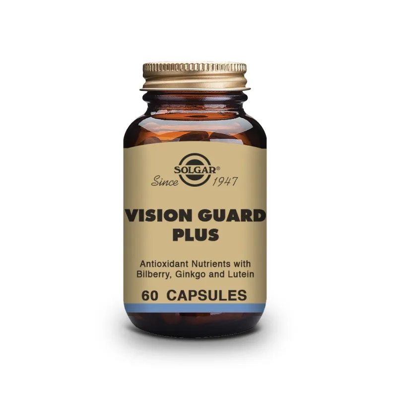 Solgar Vision Guard Plus es un complemento alimenticio formulado con nutrientes de origen vegetal y mineral. Combina luteína, extracto de Ginkgo Biloba, zinc y cobre junto con vitaminas A, C, E, riboflavina y niacina.