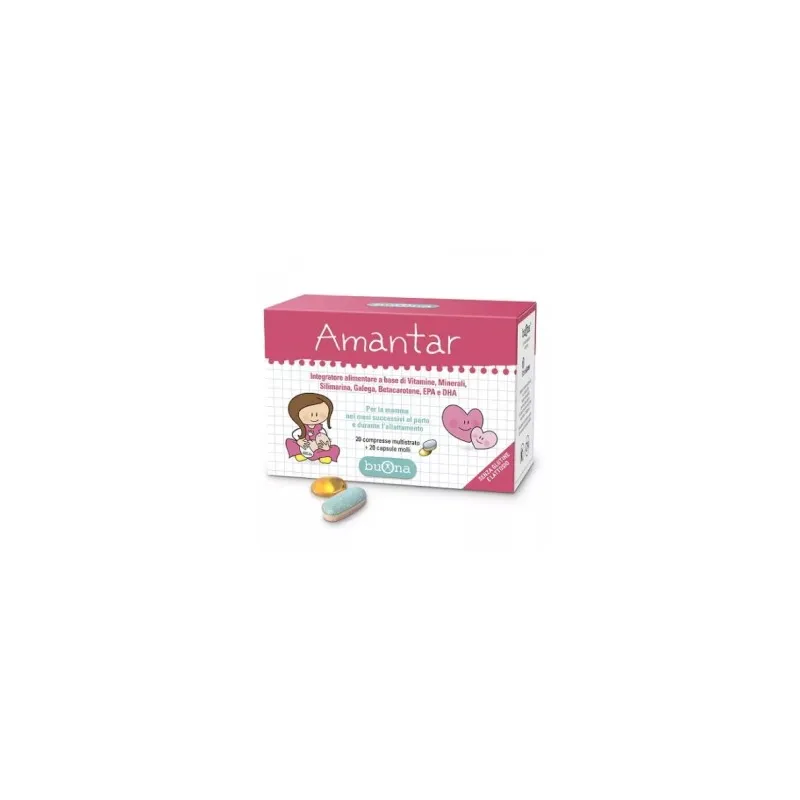 Buona Amantar es un complemento nutricional dirigido a mujeres durante la lactancia. Está compuesto por vitaminas (B6, B8), minerales (hierro, zinc, selenio), silimarina, galega officinalis, betacaroteno y ácidos grasos omega-3 (EPA y DHA). Estos ingredientes pueden contribuir a mantener una producción y calidad adecuadas de leche materna.